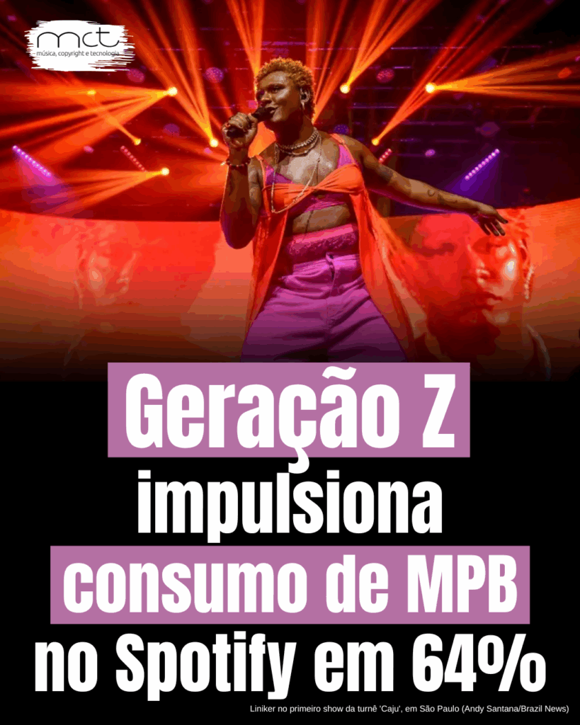 Entre 2022 e 2024, o consumo de MPB no Spotify cresceu 47%, sendo que 64% desse aumento foi impulsionado pela Geração Z, especialmente jovens entre 18 e 24 anos. Esse público já representa 25,1% de toda a audiência do gênero na plataforma, tornando-se a única faixa etária com crescimento expressivo no período. Entre os nomes mais ouvidos estão ANAVITÓRIA, Liniker, Tribalistas, Djavan e Marisa Monte, além de clássicos de Chico Buarque, Tim Maia, Legião Urbana e O Rappa.